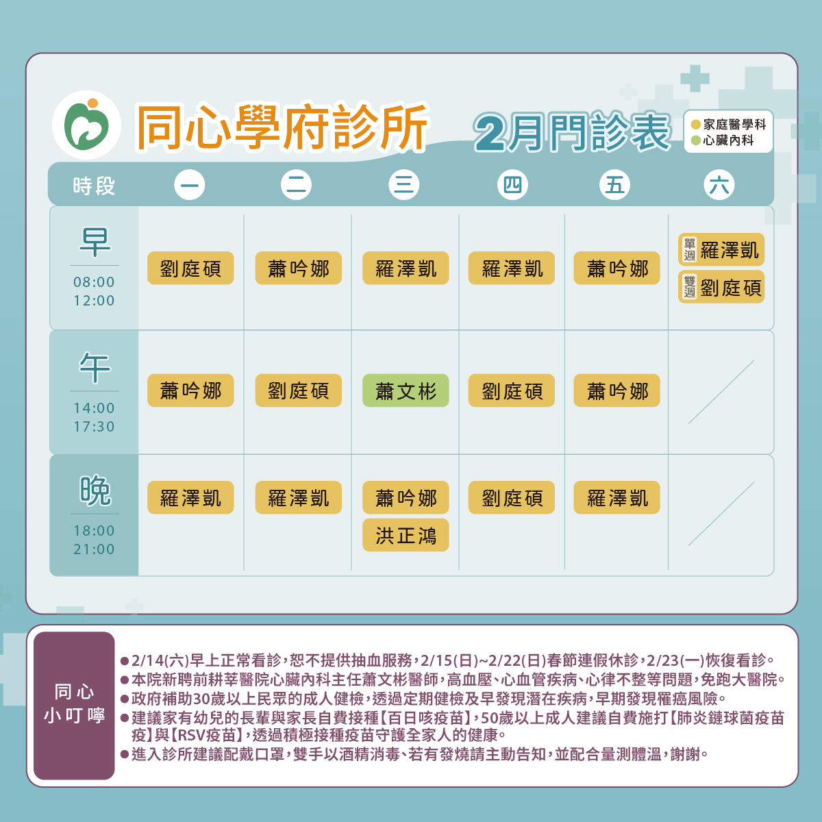 目前位置:同心學府診所 > 門診表